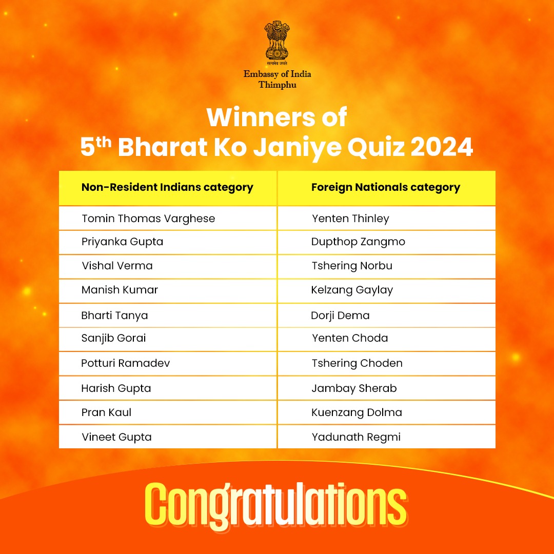 Winners of 5th Bharat Ko Janiye Quiz 2024 - Bhutan